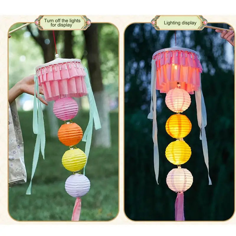 Chinese Lanterns With Lights Portable Chinese Mid Autumn Lantern Holiday Decor Retro Decorative Gauze Lamp LED Light For Friends